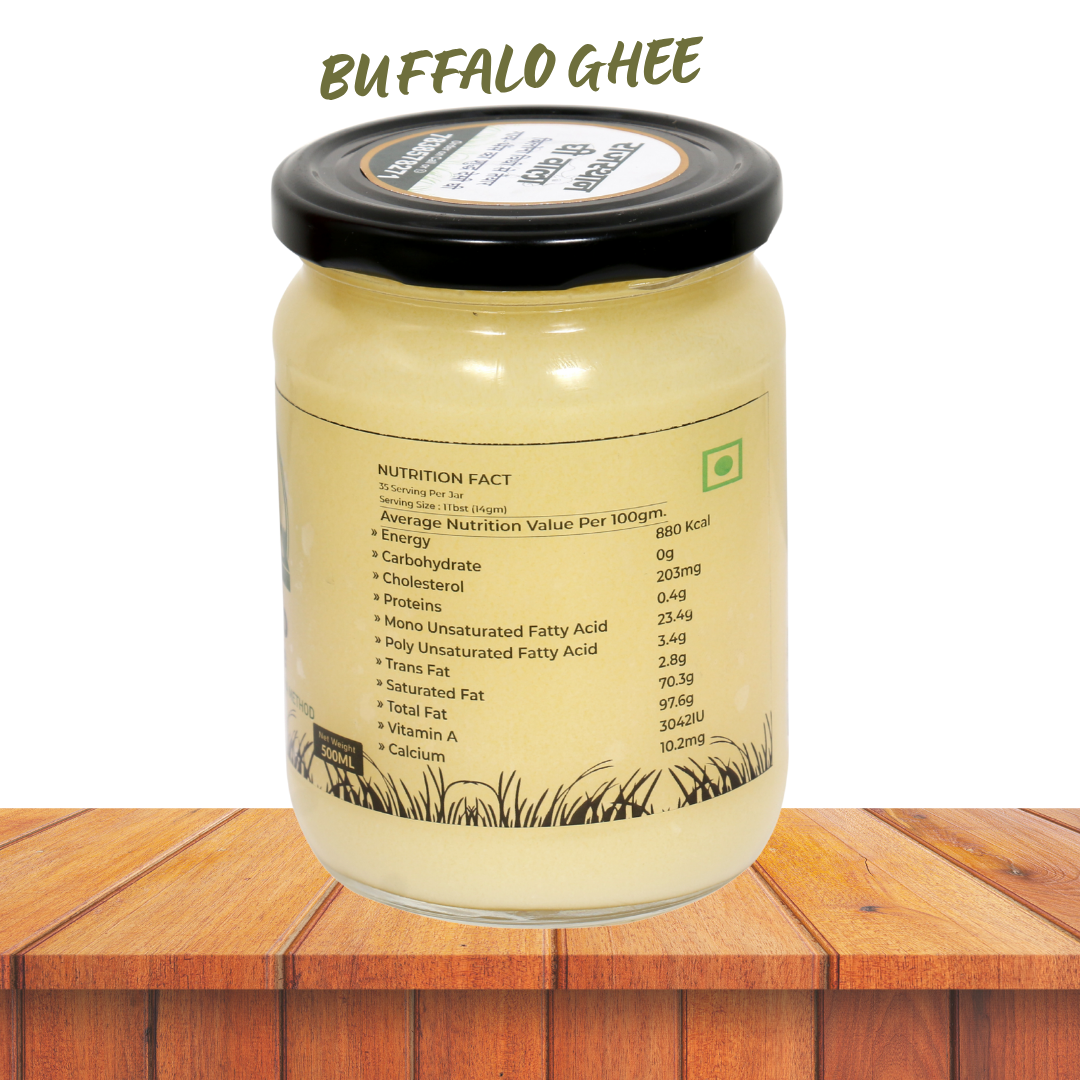 Buffalo ghee is a rich source of fat-soluble vitamins, including A, D, E, and K, which are essential for various bodily functions, such as immune support, bone health, and skin vitality.